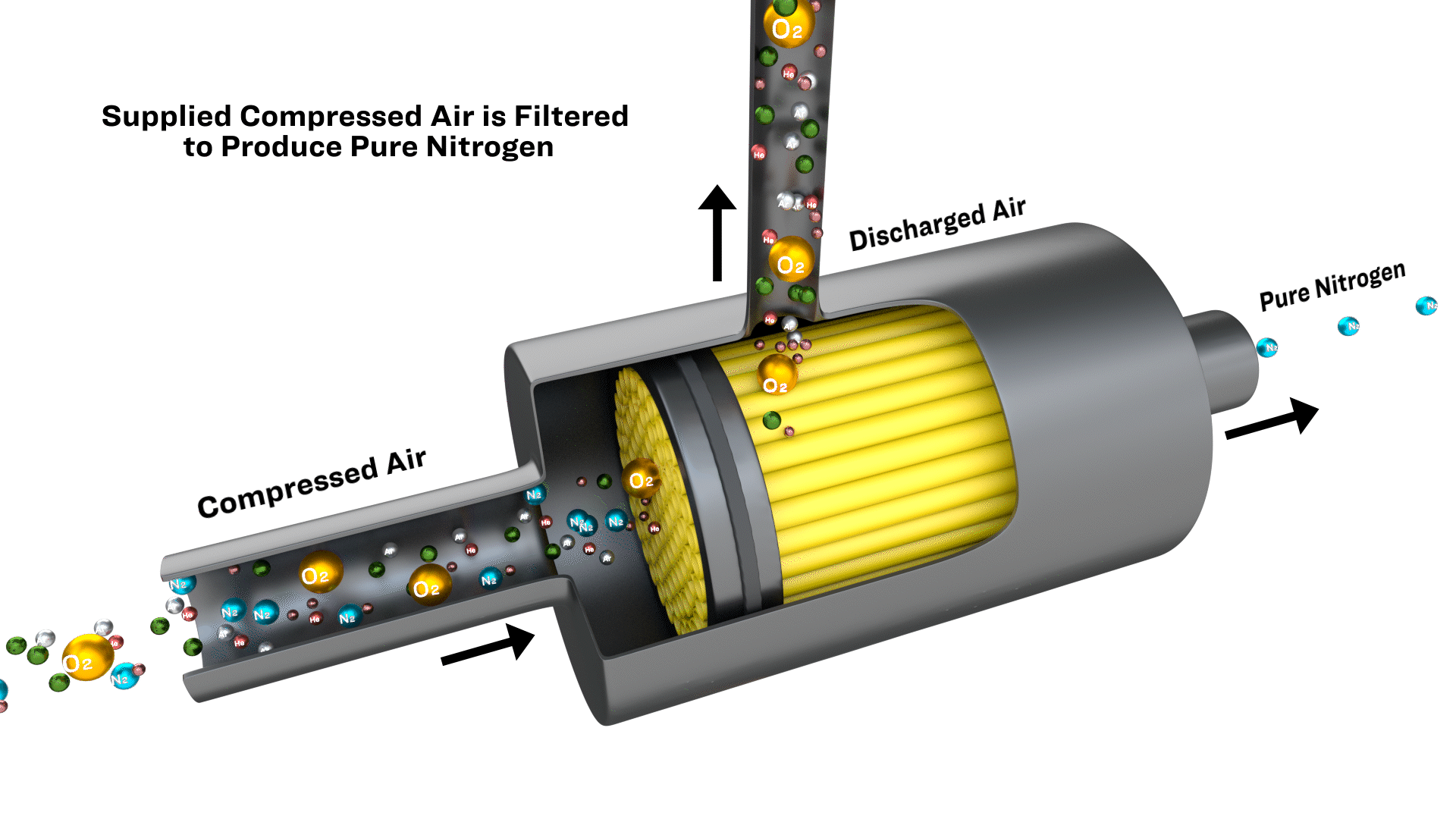 Selective permeation technology separates nitrogen contained in compressed air and uses it as the fluid carrier during powder application to create constant humidity control. Why? Nitrogen carries no moisture.
